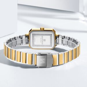 Model: Naviforce NF5046 Ladies Quartz Watch Unique square dial with elegant color combination Retro-inspired design with a modern, stylish look Durable stainless steel strap with vacuum ion plating Comfortable, long-lasting, and eco-friendly finish Dual time display with precise quartz movement 30M (3ATM) water resistant for daily use Luminous display for clear visibility in low light…