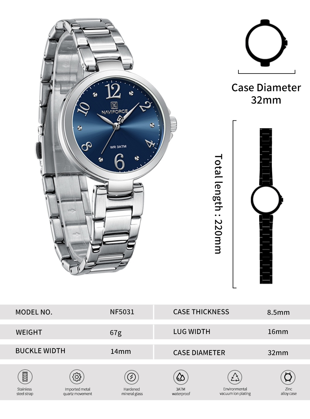 The NF5031 embraces perfect simplicity. Arabic numerals paired with studs create a fresh and dynamic appeal, capturing the essence of summer energy.